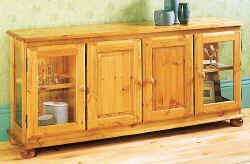 163 4-Door Cupboard internal lighting &pine edged adjustable glass shelves in glazed sections, adjustable internal shelf in cupboard, safety glass H673mm W1550mm D310mm (H26.5" W61" D12.25") |